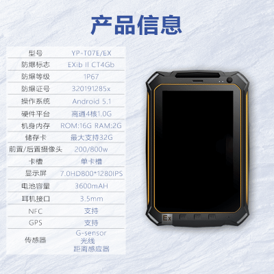 湖北英鹏高清摄像持久耐用防爆平板YP-T07E/EX