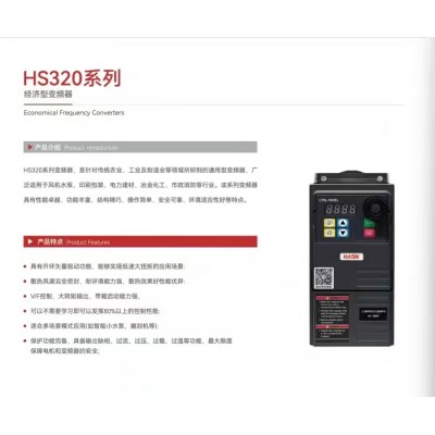 HS320系列变频器,是针对传统农业、工业及制造业等领域所研制的通用型变频器,广泛适用于风机水泵、印刷包装、电力建材、冶金化工、市政消防等行业。该系列变频器具有性能、功能丰富、结构精巧、操作简单、安全可、环境适应性好等特点。