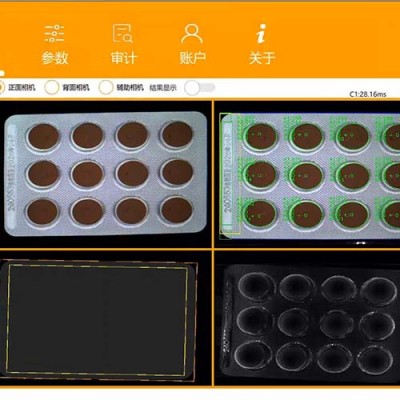 药片外包装缺陷检测系统通过视觉检测技术,对药片、胶囊及其铝箔包装外观进行缺陷检测,并将不良泡罩自动剔除,相较于传统的人工检测方式,视觉检测效率更高,检测精度更准确。其z高检测精度可达50微米,检测内容包括空泡、半粒、PVC异物、药片异色异物、胶囊漏液、无批号等。