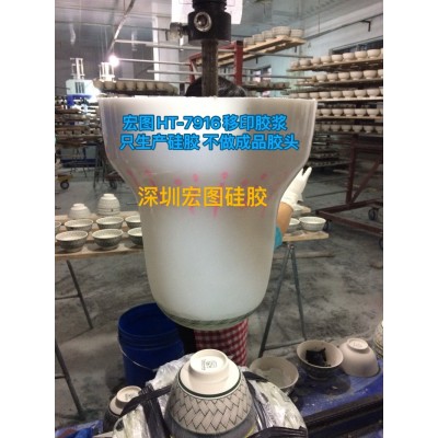 陶瓷印花胶头其功能是将蚀刻在钢板上的图案精准转移到餐具(如陶瓷、塑料或不锈钢餐具)表面。胶头柔软回弹效果好,移印图文清晰,适合移印餐具这类表面不规则或带有弧度的产品。选用HT-7916型号硅胶是专用于制作陶瓷餐具胶头。