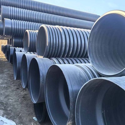PE大口径双壁波纹管是以高密度聚乙烯(HDPE) 为原料,经特殊挤出成型工艺制成的新型塑料管材,内壁光滑、外壁呈环形波纹结构,口径通常在300mm-2000mm之间,广泛应用于市政、水利等领域的给排水工程。