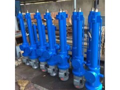 DYTZW(Ⅱ)整体直式微型电液推杆 电液推杆与电动推杆、电动执行机构、液压缸、气缸相比,有如下优点: 1、具有可靠的过载自动保护性能,即使超负荷或运行至行程终点时,电机照样可正常运转,却不会烧毁损坏其它机件。电动推杆和电动执行机构 则无法可比。 2、电液推杆可以带负荷启动,而电动推杆和电动执行机构很困难。 3、同一台电液推杆在其额定的推、拉力范围内,其推、拉力可无级调节,因而具有驱动力范围广,而电动推杆和气缸则无法办到。 4、在推力和速度相同的情况下,电液推杆消耗的电能是电动推杆和电动执行机构的一半。 5、电液推杆采用全液压传动,动作灵敏,运行平稳,能有效减缓外来的冲击力,行程控制,气缸、电动推杆和电动执行机构则不能做到。 6、电液推杆采用机、电、液一体化全封闭结构,工作油路循环于无压的封闭钢筒里,体积小、不漏油,便于安装维修。在恶劣的环境下不吸尘、不进水、内部不锈蚀,使用寿命比气缸、电动推杆、电动执行机构长久。 7、投资小。气缸需建昂贵的空压站,气压管路易泄漏,气压不稳定,噪音高;液压缸需建液压站,而电液推杆只需接通电源即可使用。 8、维修方便。在特殊情况下,电液推杆只需更换即可,而液压缸则需先慢慢查明故障原因,再进行仔细地维修,这就影响了全部工作的正常运行。 造型说明 电液推杆主要是由推杆的型式、电机的防护等级、额定输出力、行程、额定速度和使用角度等六大基本要素组成,还可根据用户特殊要求,配套三种调节功能,即:速度调节、推拉力调节,行程调节(行程开关)。除了上述三种调节功能订货时必须文字注明外,其它请参照型号编制方式认真填写六大基本要素。 以下举“DYTZB1000-500/50-X型电液推杆”为例,分别说明如何选型和型号编制的方式。 如何选型:某一场所需要一台整体直式的电液推杆,要求电机防爆,其推力10kn,行程500mm速度110mm/s,使用角度向下推,那么所选电液推杆的标准型号为:DYTZB1000-500/50-X.(B为防爆标记,X表示向下推) DYTZW(Ⅱ)整体直式微型电液推杆技术参数(选型表) 型号(Ⅱ) 额定输出力(10N) 额定速度(mm/s) 电机型号 行程制造范围(mm) 速度制造范围(mm/s) 推力 拉力 推速 拉速 DYTZWⅡ100-/160 100 70 160 200 Y802-4-0.75KW 50-600 80-160 DYTZWⅡ300-/120 300 210 120 180 Y802-4-0.75KW 50-600 40-120 DYTZWⅡ500-/120 500 350 120 180 Y90S-4-1.1KW 50-600 40-120 DYTZWⅡ700-/100 700 490 100 130 Y90S-4-1.1KW 50-1500 20-100 DYTZWⅡ1000-/100 1000 750 100 130 Y90L-4-1.5KW 50-1500 20-100 DYTZWⅡ1750-/90 1750 1300 90 115 Y100L1-4-2.2KW 50-1500 10-90 DYTZWⅡ2500-/90 2500 2050 90 115 Y100L2-4-3KW 50-1500 10-90 DYTZWⅡ3000-/90 3000 2500 90 115 Y100L2-4-3KW 50-1700 10-90 DYTZWⅡ4000-/80 4000 2950 80 100 Y112M-4-4KW 50-1700 10-80 |