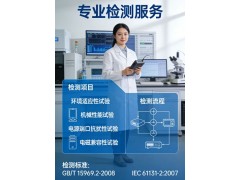 依据标准要求,检测项目可分为环境适应性试验、机械性能试验、电源端口抗扰性试验、电磁兼容性试验四大类,具体如下: