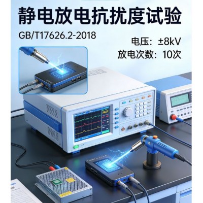 GB/T17626.2-2018标准明确规范了静电放电抗扰度试验的核心方法,该标准等同采用IEC61000-4-2:2008国际标准,试验方式分为接触放电与空气放电两种,同时包含间接放电的耦合板试验方法。接触放电作为优先选择的试验方式,主要针对设备的金属表面、金属接口等导电部位,模拟人体与设备直接接触时的静电释放过程。空气放电则适用于无法进行接触放电的场景,如设备的非金属外壳、缝隙等绝缘部位,模拟人体或物体接近设备时的静电放电现象,通过控制放电距离与电压,还原真实使用中的静电干扰场景。
