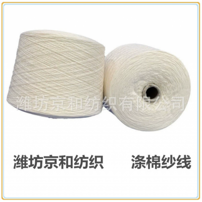 纱线条干好,毛羽少、挑三丝,适合针织、机织,用于做服装面料、针织汗布、针织起绒、针织毛圈、地毯合股之后用于做织带等。涤棉纱常规配比:t65/c35 t50/c50 t80/c20 cvc60/40 cvc70/30 cvc80/20等配比,常规支数有:6支—60支。 可按客户要求订做反捻纱、竹节纱、合股纱等。