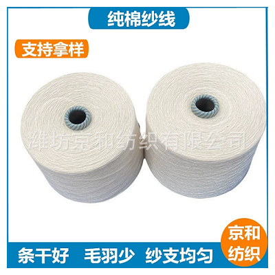 粗支棉纱线2支-18支,单纱、竹节纱及合股纱线。纱线条干好,毛羽少,挑三丝,可做针织机织、针织毛圈、针织起绒、服装辅料等。以上品种部分有货,可根据客户要求定纺。