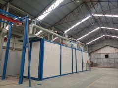 喷塑线:上件—喷淋前处理—水分子脱水烘干—冷却—喷塑(喷粉)—烘干固化(20min、180℃-220℃)—冷却—检测—下件