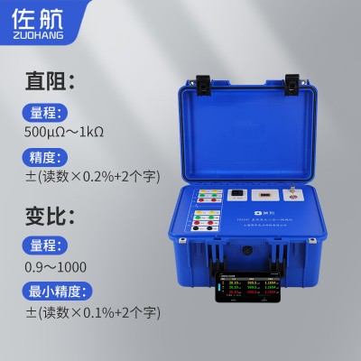 | 直阻测量范围0.5mΩ~1kΩ | 变比测试范围0.9~1000 | 工作电源内置锂电池 |