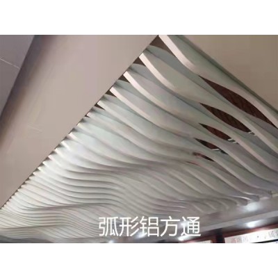 2、弧形铝方通用于隐蔽工程繁多人流密集的公共场所,便于空气的流通、排气、散热的同时,能够使光线分布均匀,使整个空间宽敞明亮。