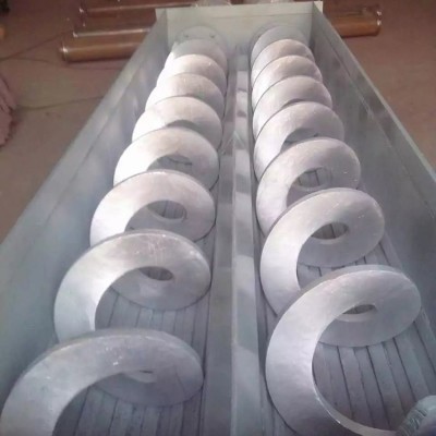 螺旋输送机的工作原理是旋转的螺旋叶片将物料推移而进行螺旋输送机输送,使物料不与螺旋输送机叶片一起旋转的力是物料自身重量和螺旋输送机机壳对物料的摩擦阻力。螺旋输送机旋转轴上焊的螺旋叶片,叶片的面型根据输送物料的不同有实体面型、带式面型、叶片面型等型式。螺旋输送机的螺旋轴在物料运动方向的终端有止推轴承以随物料给螺旋的轴向反力,在机长较长时,应加中间吊挂轴承。