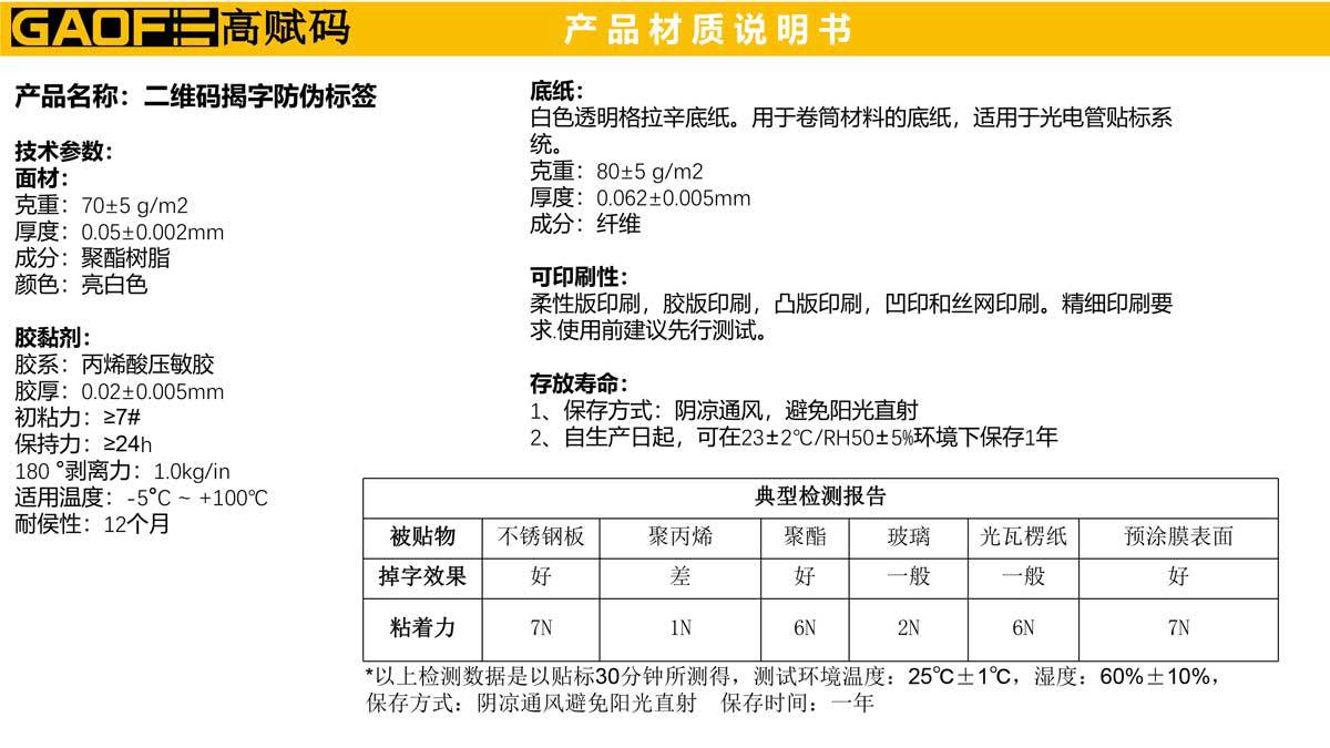 揭底留字标签 VOID 防伪标签 特殊防伪标签 高赋码