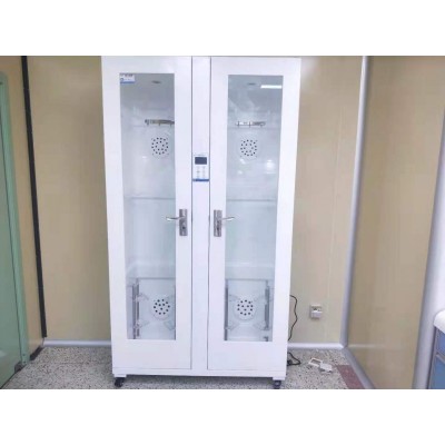 微电脑数显储存柜产品介绍A:数显储存柜分为单门储存柜DX-SX-I和双门储存柜DX-SX-II,硬镜储存柜DX-SXY-I;(型号命名的含义DX为迪新品牌,SX为数显简称,I为单门,II为双门,Y为硬镜简称)B:软镜储存柜规格参数:单门储存柜规格为630*535*2080mm(长*宽*高);双门储存柜规格为1150*535*2080mm(长*宽*高),外部采用多工艺处理的钢塑材料,内胆采用优质高分子材料,独立的开模整体吸塑成型,无缝隙,不藏污垢;易清洗、表面细菌残留低,使用方便、安全、快捷,对内镜无磨损。外壳与内胆融为一体,柜内空间密闭效果优异,外观简洁实用,美观大方。软镜柜内部设有上中下三层内镜悬挂系统,全方位的定位内镜,防止相互碰撞。内设智能化自动控制紫外线,循环风的消毒程序,消毒工作自动累时,另有照明、通风、循环干燥、温度湿度显示等功能。单门可储存4-6条内镜,双门可储存6-12条内镜。C:硬镜储存柜规格参数:规格为:630*535*2080mm(长*宽*高)外部采用多工艺处理的钢塑材料,与软镜的不同是硬镜柜没有高分子内胆。